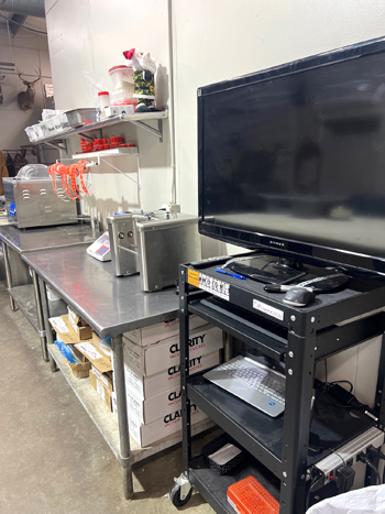 Check out our upgraded after hours walk-in cooler! With its massive length no animal is too big for us to process. We’ve also added in extra security for all your after hours and off season desires. |