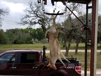 We have a complex railing system that keeps your deer hanging so your animal will never touch the ground in our facility! |