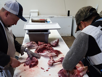 A climate controlled cutting room keeps your meat at a low temperature and inhibits bacteria growth. This year we have upgraded to an amazing 20 feet of poly-top cutting tables, to ensure the processing of your wild game is organized and cut to perfection. |